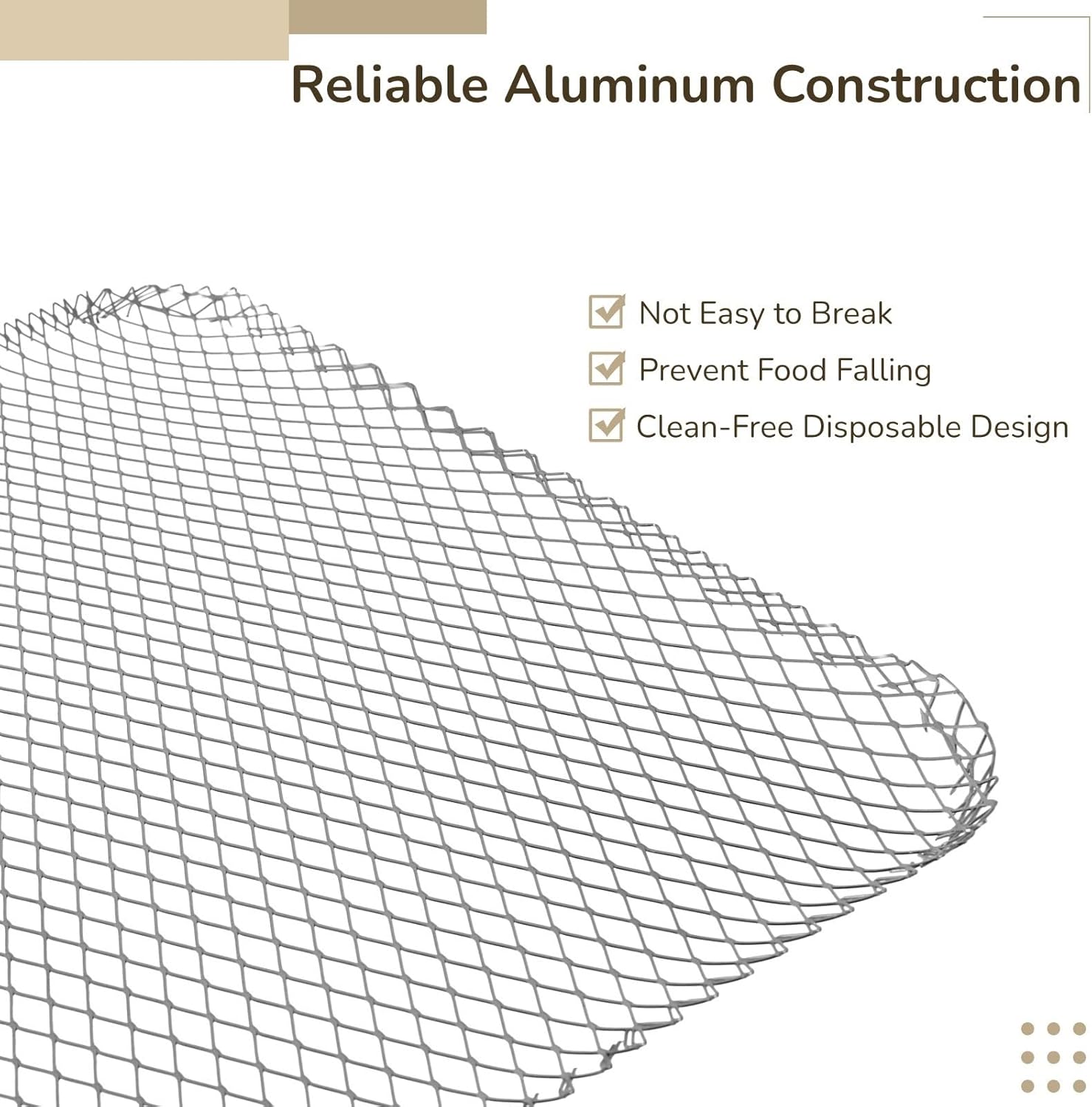 Color: silver Material: aluminum Size: 15.2 times;12in Package Includes: 20 times;disposable grill topper Note: - Please refer to the measurement. Tiny measuring error is allowable in normal range. - There might be a little color difference due to the monitor, camera or other factors, please refer to the physical item.