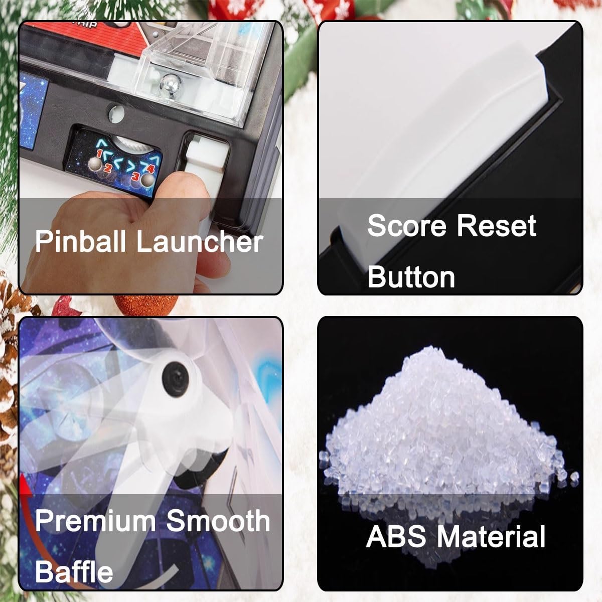 Relive the golden age of arcades with Retro Arcade Electronic Pinball Machine! This isn't just a toy; it's a fully-featured Electronic Tabletop Game that packs all the pulsating energy of a classic pinball alley into a mini pinball machine designed for your homeProduct Name: Mini Pinball Machine Birthday Arcade Machine with Lights Material: ABS Retro Arcade Desktop Ball Shooting Toy Product Weight: 1.6 kgArcade Pinball Gifts Package Weight: 2 kgClassic Retro Home Pinball Machine Product Dimensions: 24.5 x 42 x 27 cm (9.65 x 16.5 x 10.5 in)Birthday Ball Shooting Toy Gift with Lights Sounds Package Dimensions: 28 x 9 x 63 cm (11 x 3.5 x 24.5 in)Birthday Party Gift Mini Pinball Game Packing: Graphic CartonPackage Including:Pinball Machine *1Stand *2Tabletop Pinball Game Notice: Battery not included Battery Specifications: AA *6Action and Reflex Pinball Game For Friends Birthday Party Gift Boys Girls Birthdays Kids Adults