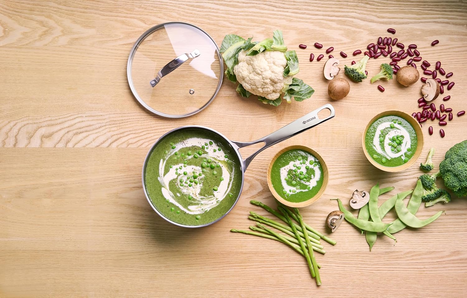 Kyocera ceramic-coated nonstick cookware is the healthier, more environmentally friendly choice for your kitchen. Free of PTFE, PFOA, lead, cadmium, fluorine, and heavy metals, this cookware is easy to clean, provides even heat distribution, and is compatible with all heat sources.