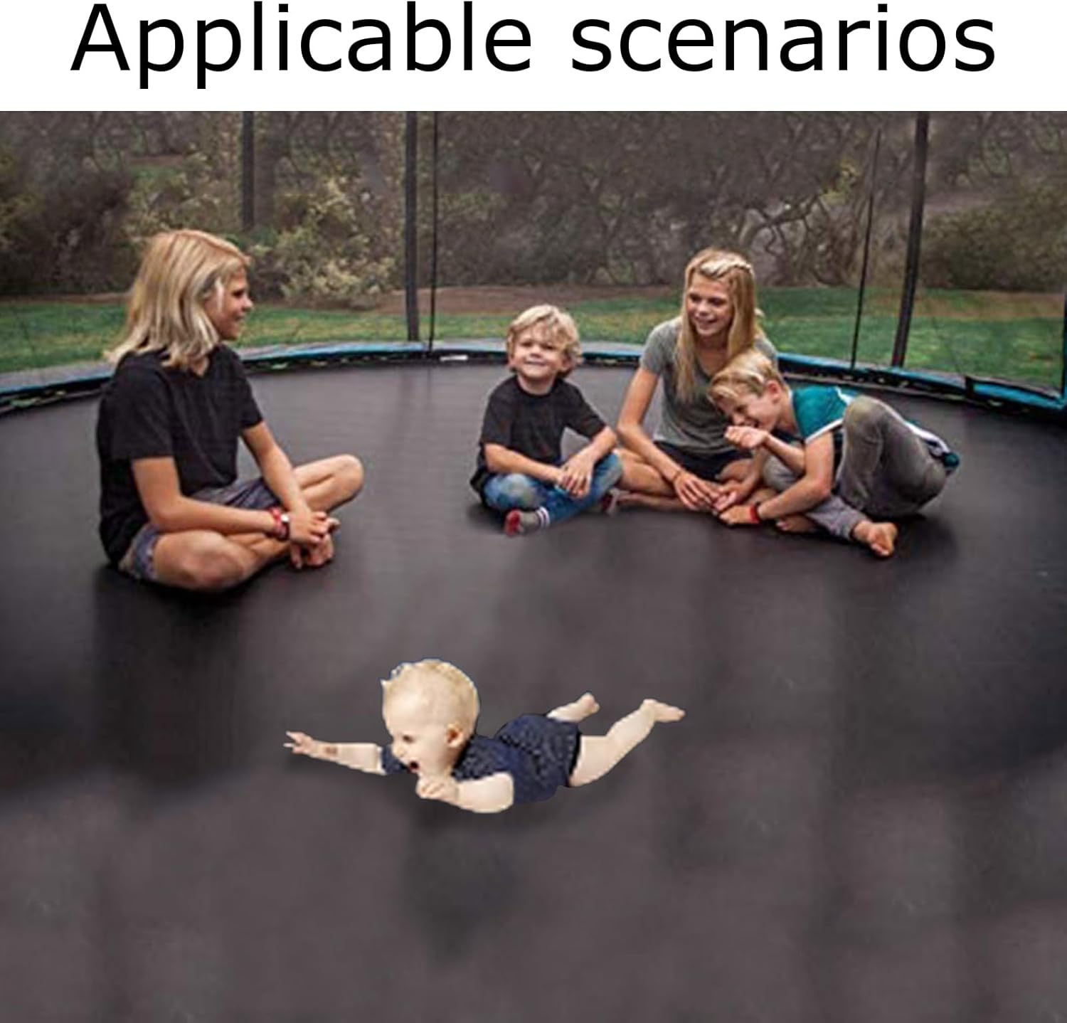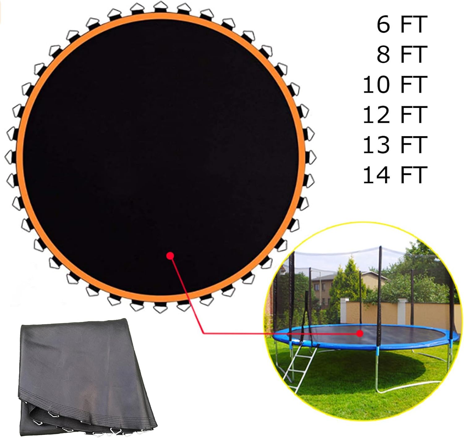 ✔With this new and strong trampoline jumping mat, the bounce of the trampoline can be restored to its original state! ✔Specification:Material: PPShape: roundColour: BlackSuitable for: fitness equipment, leisure, entertainmentSize (approx.): 6FT: diameter 1.83m, 36 buckles8FT: diameter 2.44m, 42 buckles/48 buckles10FT: diameter 3.06m, 54/56/60/64 buckles12FT: diameter 3.66m, 72 buckles13FT: diameter 3.96m, 80 buckles14FT: diameter 4.27m, 80/88 buckles✔Package include:1* Trampoline Jump cloth✔Notice:1. Due to different monitors, please allow a little color difference. Please refer to the actual product.2. Please allow a slight error of 1-3 cm due to manual measurement.