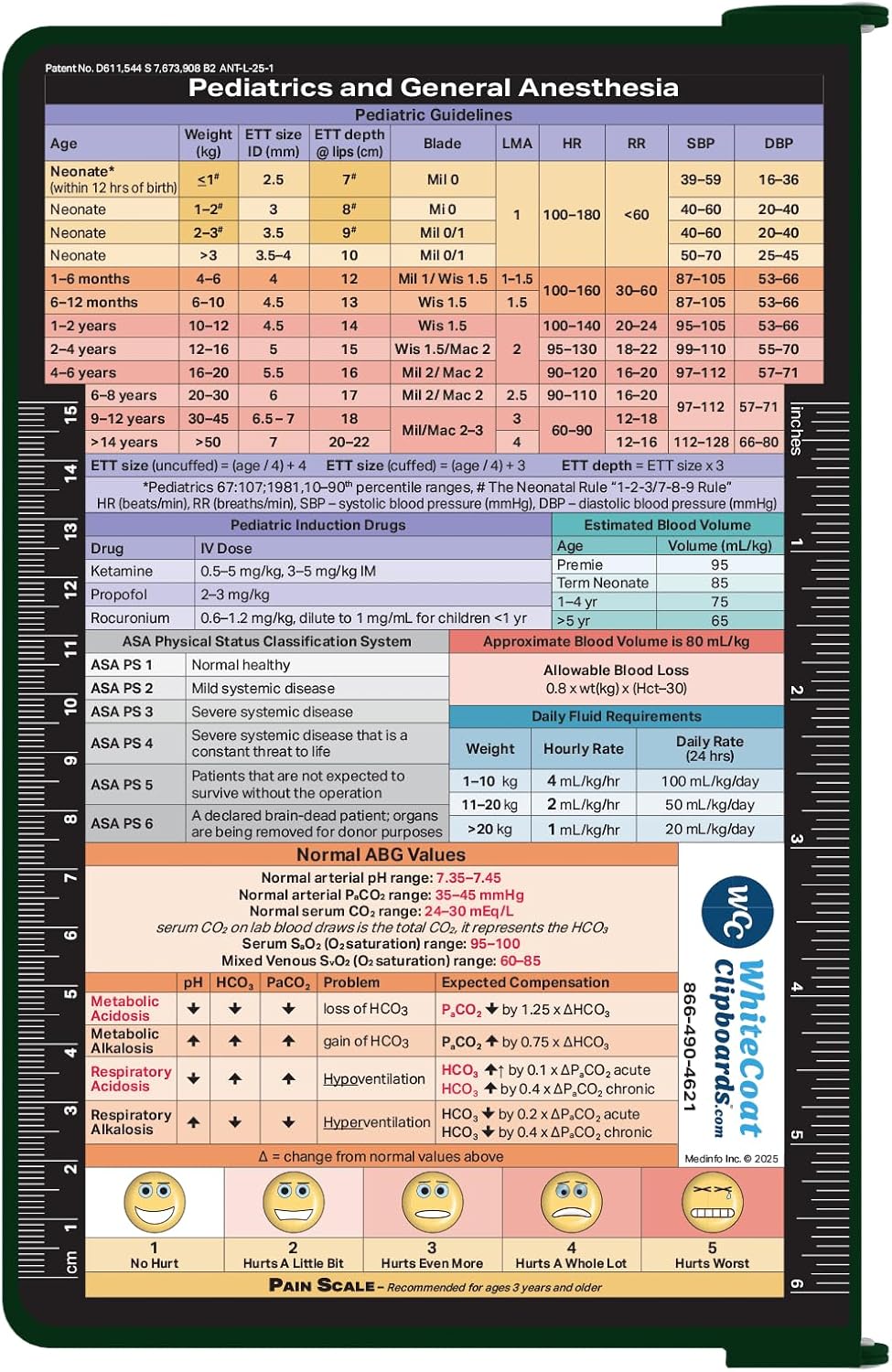 Full size medical pocket clipboard from WhiteCoat Clipboards. Unique design allows you to fold the clipboard in half for storage in your pocket. Made of lightweight aluminum with the ability to carry 30 pieces of paper without a crease while at the same time securing all your medical information inside. Carry patient assessment forms, anesthesia logs, medication lists, and all your documentation in a HIPAA secure clipboard. The clipboard also functions as a quick medical reference guide with detailed day-to-day information such as intubation medications, acid-base equations, daily fluid requirements, pediatric intubation guidelines, pressors chart and much more.