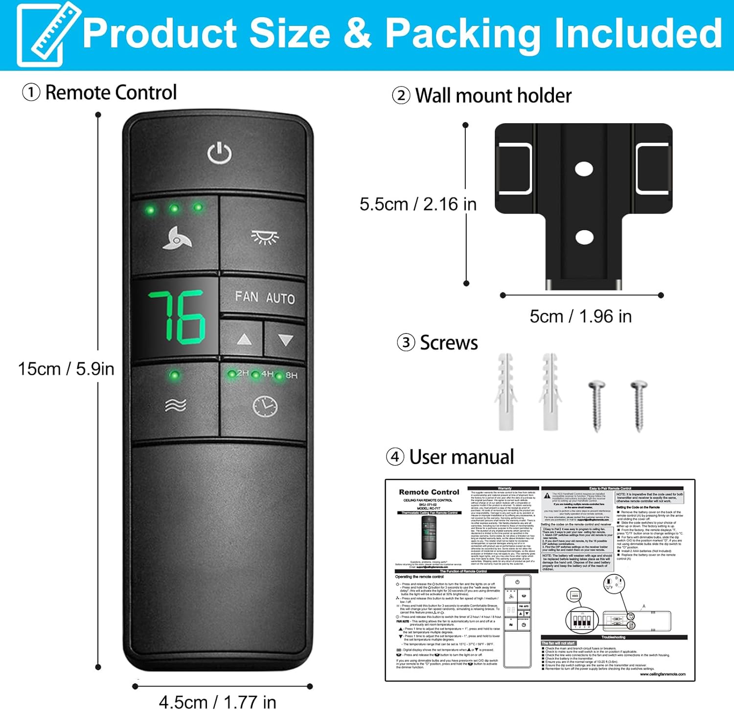 • Multi-Speed Settings --- This thermostatic ceiling fan remote control kit has 3 speed control (HIGH/MED/LOW/OFF), and included a comfortable Breeze setting which randomly alternates the fan's speed to create an organic breeze effect.